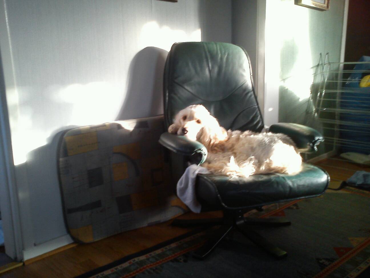 när killarna hade kommit så låg vi lite här o småsnackade.. jag sa åt matte att hon kunde ju passa på nu.. för det var inte nåt speciellt på datorn…hihi.. ja att hon skulle gå o promenera lite på bandet där uppe.. ja sa hon.. det var ju en fin ide.. o segade sej upp för trappan..